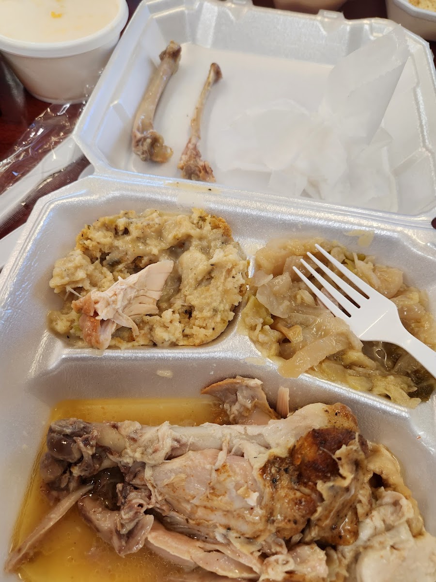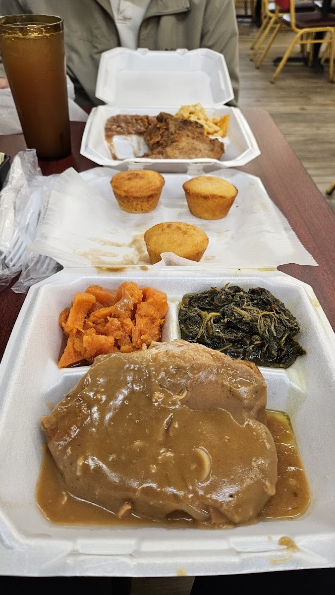 A few standout dishes you absolutely can’t miss include the fried chicken, which is crispy on the outside and tender on the inside, paired perfectly with creamy mashed potatoes and rich gravy. Another must-try is the smothered pork chops, a classic Southern favorite served with a flavorful, savory gravy that elevates the dish. And for something to cool off the heat of those spices, be sure to grab a bowl of their freshly baked cornbread, which is a perfect balance of sweet and savory.